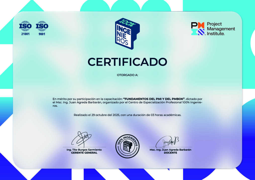 - Sesión “Estrategia de Examen PMP”: entrenamiento situacional del examen, gestión del tiempo y técnicas de respuesta.